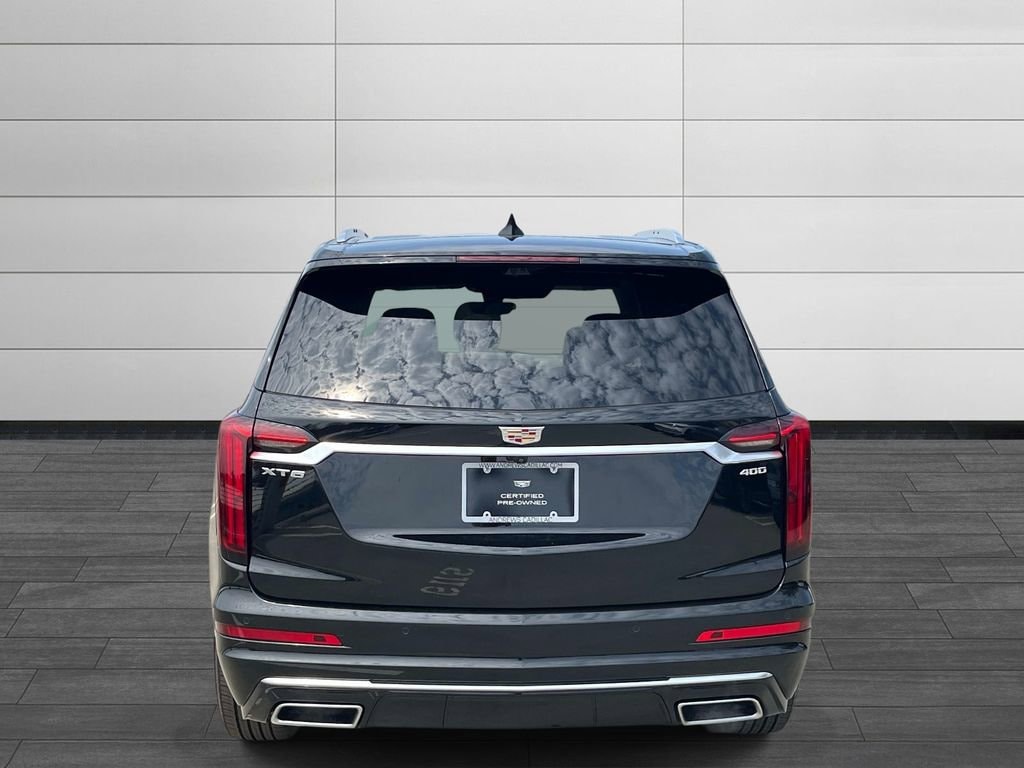Opens or closes when the system senses the key fob and the driver extends their foot under the left-hand side of the rear bumper over an image of the Cadillac Crest projected under the vehicle